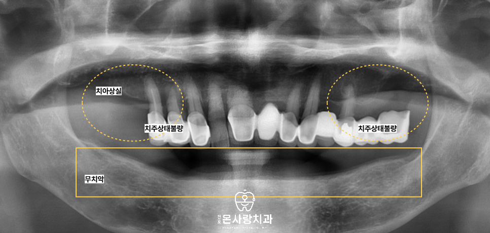 아래쪽에는 전체 임플란트